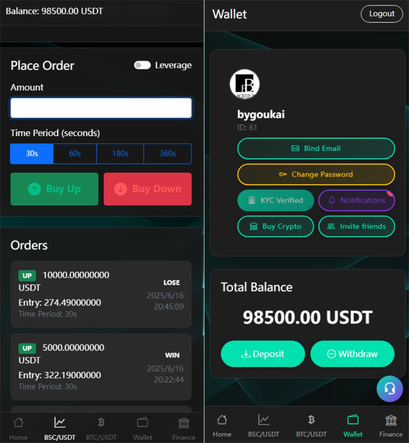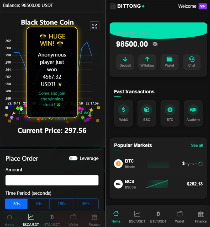 BitTong虚拟货币微交易投资理财源码/现货交易+杠杆交易+完美K线控制+完整用户输赢控制+代理/前端html+后端PHP