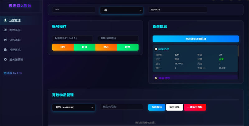 极无双2 3D动作ARPG手游服务端 新版后台