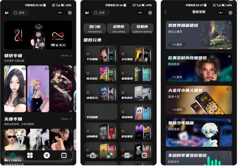 头像壁纸取图小程序 壁纸小程序 黑色主题 超美UI 壁纸小程序 流量主小程序