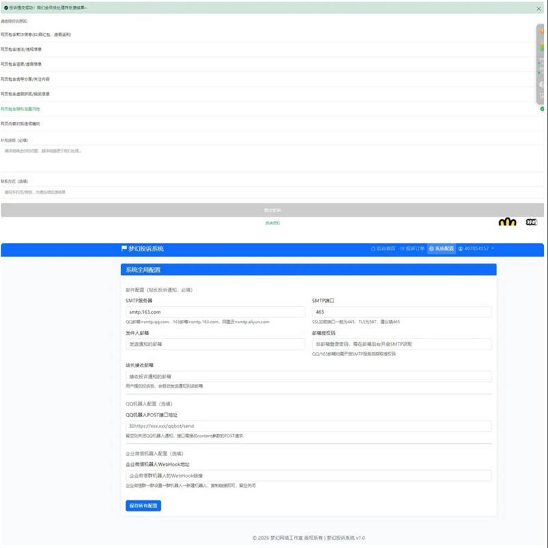 梦幻企业投诉1.0版本系统模仿微信投诉