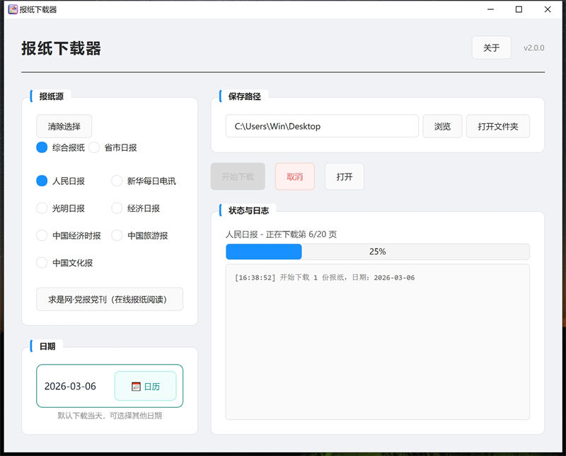 5、支持报纸下载后自动合并为PDF文件,并直接打开查看;