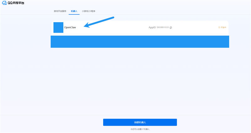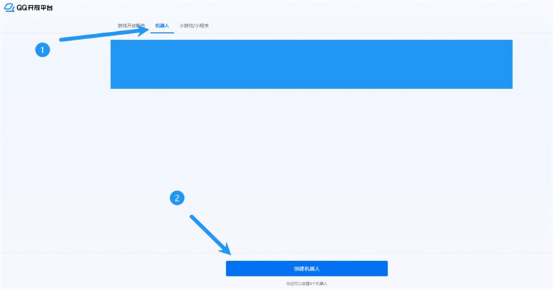 登录你的 QQ 开放平台账号,进入后台后,点击机器人,点击创建机器人