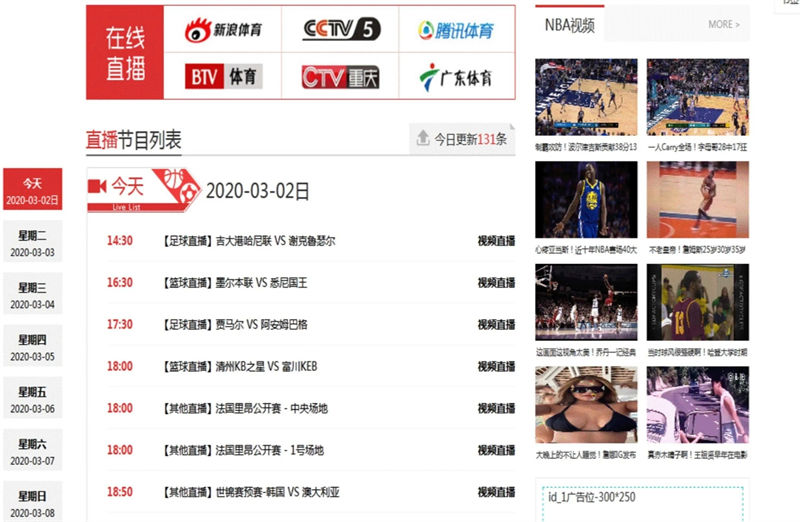 科科资源 » 帝国CMS体育直播赛事模板NBA篮足球比分比赛录像视频资讯网站源码